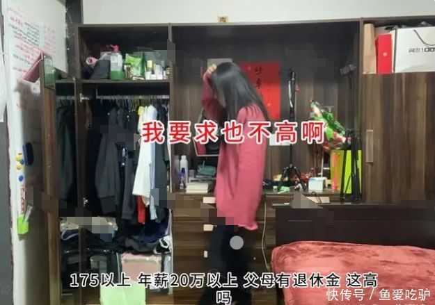 “其实我的要求真的不高,”她曾无数次地这样说道,“只要对方身高175以上,工作稳定,年薪30万,有车有房,性格好,父母有退休金就行了。”