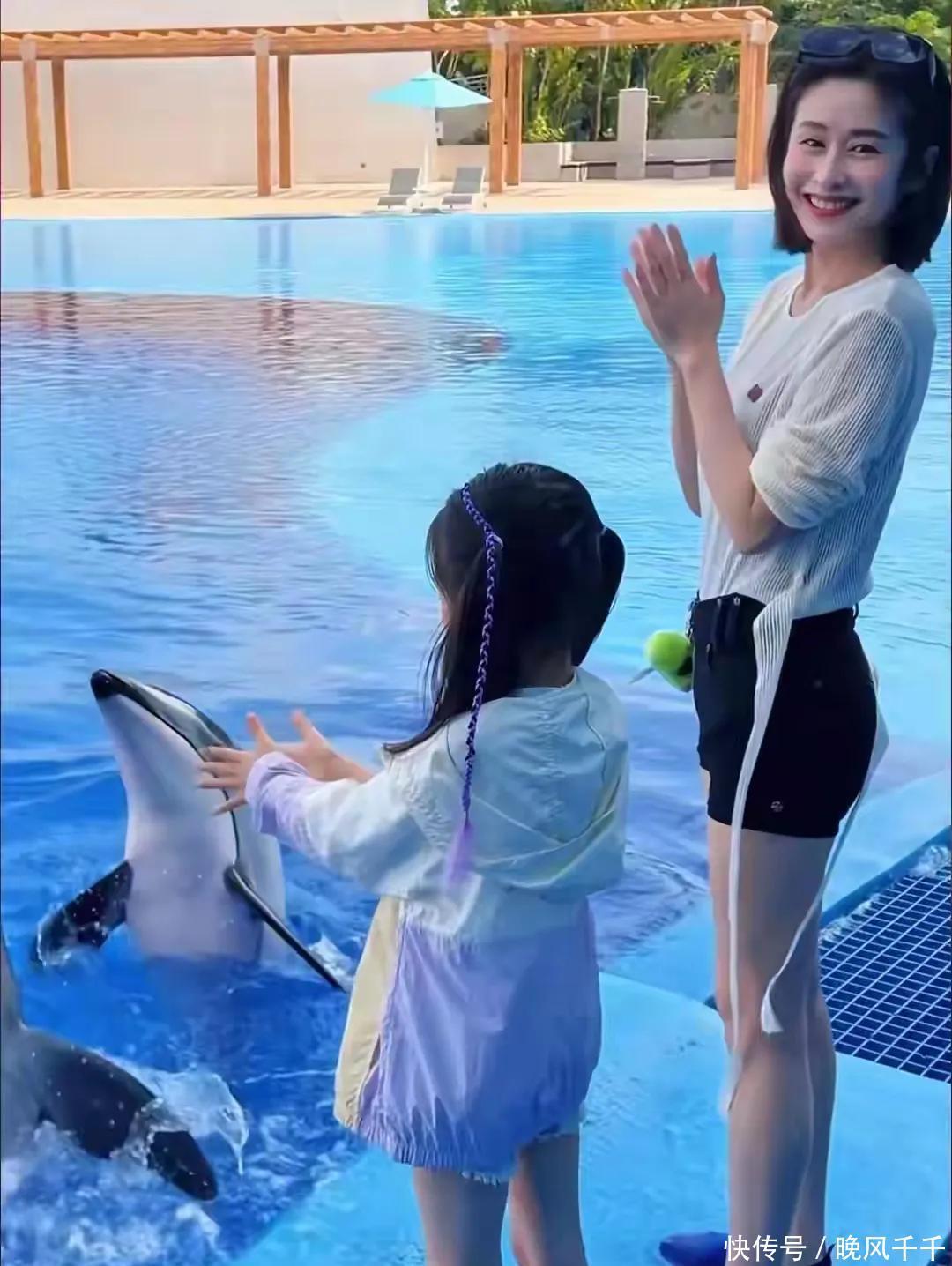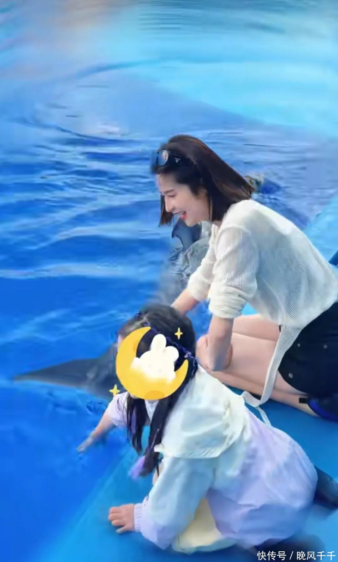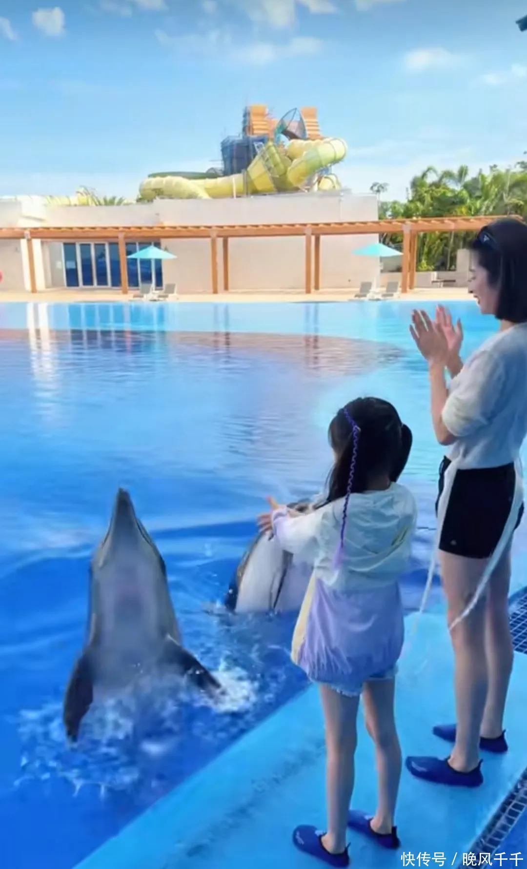 付辛博老婆颖儿三亚度假,7岁女儿像爸爸,双手握住海豚鳍好勇敢